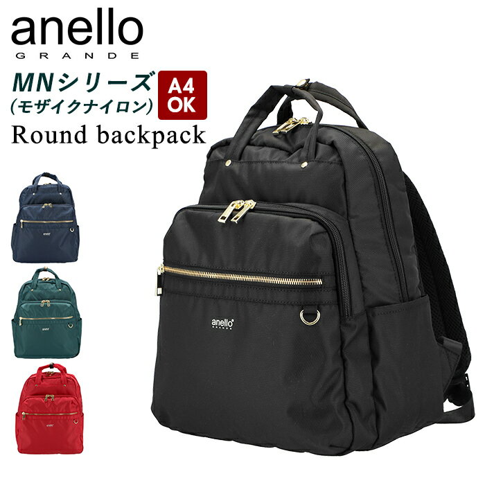 アネロ リュック 定番 ブランド anello GRANDE 通勤 a4 メンズ レディース 通学 学生 軽量 軽い 男女兼用 シンプル おしゃれ 大人 かわいい 上品 きれいめ 旅行 おでかけ ママリュック マザーズバッグ 裏地 配色 MN モザイクナイロン ラウンドリュック