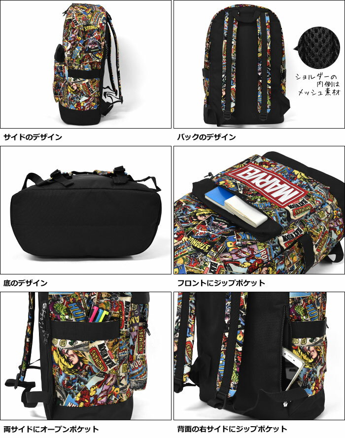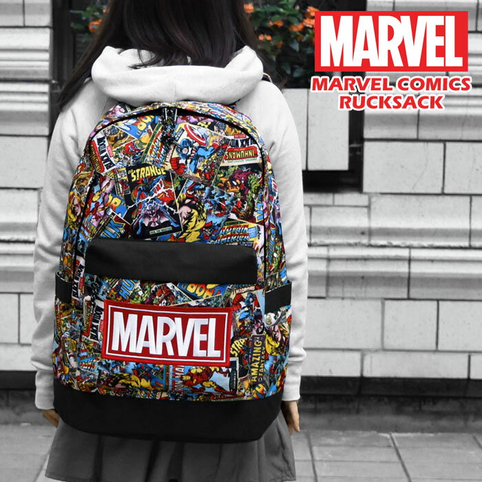 リュック レディース/ナイロンキャンバス MARVEL マーベル 総柄 ビッグ リュック マザーズバッグ 通勤 通学 旅行 A4 大容量 大きい 大きめ 大型 特大 バッグ かわいい 可愛い おしゃれ オシャレ 大人 通学用 軽量 軽い サイドポケット ナイロン キャラクター アメコミ 漫画 p