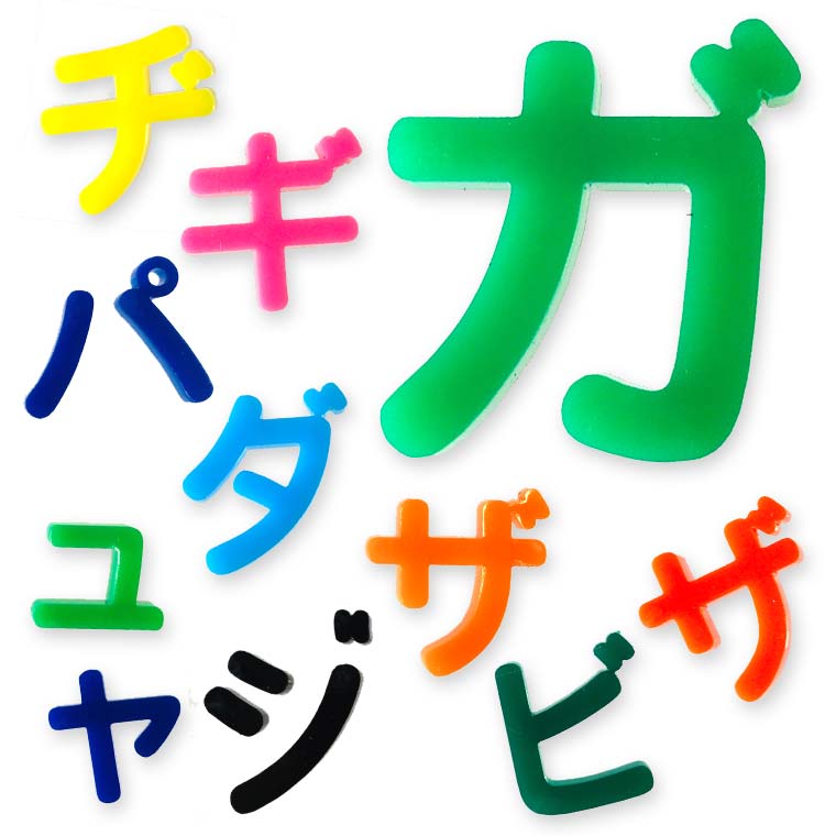 2cm 厚さ約3mm 切り抜き文字 カタカナ 小さい「ヤ・ユ・ヨ・ツ」や濁音・半濁音 蛍光アクリル製 アンシャンテラボ / 切り文字 切文字 パーツ ハンドメイド クラフト DIY 表札 ネームプレート 看板 ウェルカムボード ウエディング メモリアル作品【ゆうパケット対応】