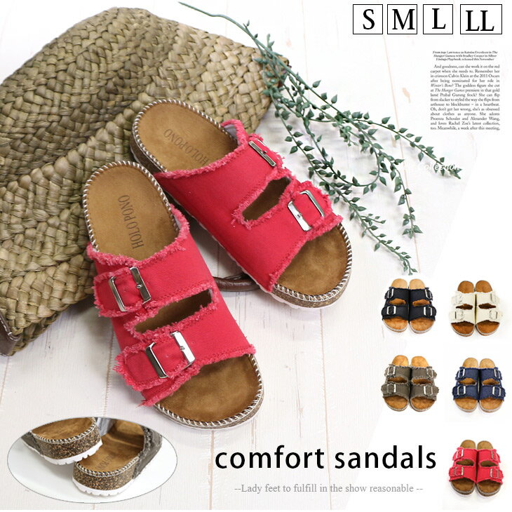 【在庫限り!特別価格!】コンフォートサンダル レディース 春夏 ブラック アイボリー カーキ レッド デニム 22.5 23.0 23.5 24.0 切りっぱなし フラット フリンジ