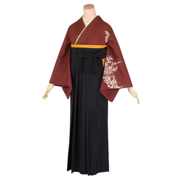 ) ●バスト:〜84cm 【着物寸法】 ●袖丈:47.5cm ●裄:64cm 【素材】正絹100% 【セット内容】 1) 振袖 2) 袴 3) 半幅帯 4) 重ね衿(伊達衿) 5) 草履・バッグ 6) 肌着(きものスリップ)7) 長襦袢(着物に合った色柄で、衿は刺繍を施した半衿付き) 8) コーリンベルト 9) 帯板 10) 衿芯 11) 腰紐5本 12) 伊達締め2本 13) 足袋(サービス品) 【レンタル期間】4泊5日(利用日3日届け、利用日翌日返却) 【HOT KEYWORD】袴 レンタル 先生 卒業式 謝恩会 教員 先生 教職員 卒業式袴 レンタル着物 レンタル袴 袴 女袴 シンプル袴 大人袴 袴セット 女性 女 レディース フルセット はかま 貸衣装 rental 卒園式 お稽古 発表会 習い事 先生袴カテゴリー 品番/商品名 HG030/茶 雪輪と白梅 落ち着いたエンジの地に、古典文様で彩られた雪輪文と可憐な白梅を配しました。
